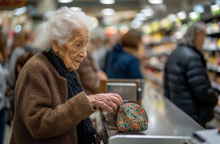 In a normal week, a typical American spends 4-6 hours in line behind feeble nonagenarians rummaging through tiny, flower-covered change purses as they attempt to pay for miniscule transactions with exact change. Economists sometimes count the number of people lined up behind these antediluvian crones and multiply that by the number of times in an hour that they hear someone mutter “Come the fuck on, Betty White” to compile a number they call “the granny grocery store metric”.