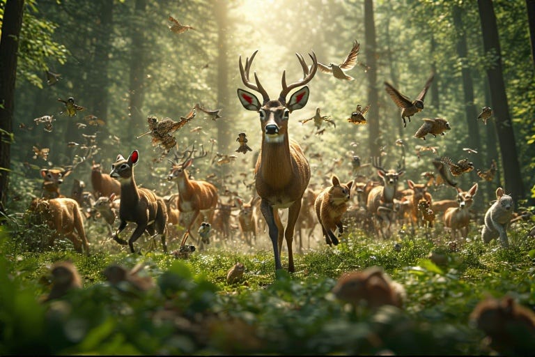 Surveys have shown that being overrun by a throng of panicked woodland animals is often a precursor to bad economic news; the phenomenon was first observed when J.P. Morgan himself was trampled to death by a hundred beavers on October 27, 1929. Investors sometimes interpret hordes of frightened animals rushing by them in a mad dash for safety as a positive sign, perhaps due to the old adage: “When the marmosets flee, good luck cometh to thee.” But don’t be fooled — when every living thing around you is getting as far away from your present position as they can, that might not be good.