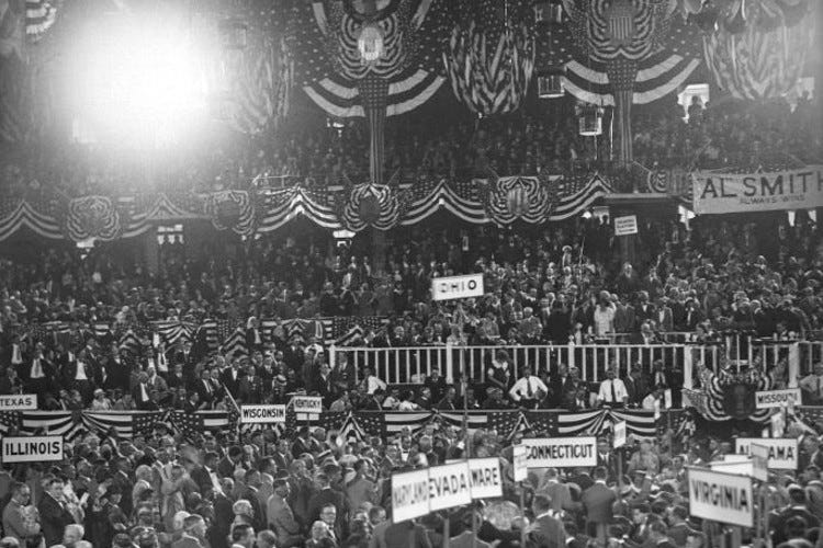 The 1924 Democratic convention at Madison Square Garden, photo from Bettmann via Getty.
