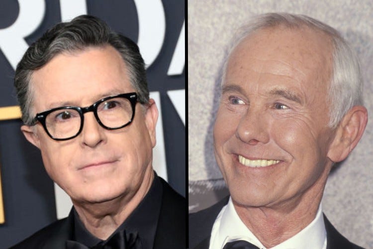 In the wake of Colbert’s cancellation, some people are wondering if late night TV should ditch politics and get back to what it does best: Feigning interest in B-plus celebrities’ C-minus movies. This clip from Johnny Carson is making the rounds, and in the world of late night, when Johnny speaks, you’re hearing the affable, Midwestern voice of God.