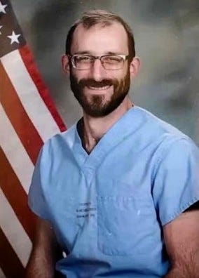 Of course, the left is also trying to posthumously manage Pretti’s image. I’ve spent the past five days listening to progressive sources portray Pretti as a mix of Gandhi, Ned Flanders, and the helpful mice from Cinderella. The Onion dubbed Pretti “a model citizen”, a CNN panelist called him “the perfect guy”, and this fan art of Pretti heroically nursing American democracy back to health has gone viral by Bluesky’s sad, little standards. A fake image of Pretti working with disabled veterans is circulating on social media. And surely the most ridiculous image enhancement attempt has been the doctoring of Pretti’s literal image — here is a photo of Pretti used by several media sources in the days after his death: