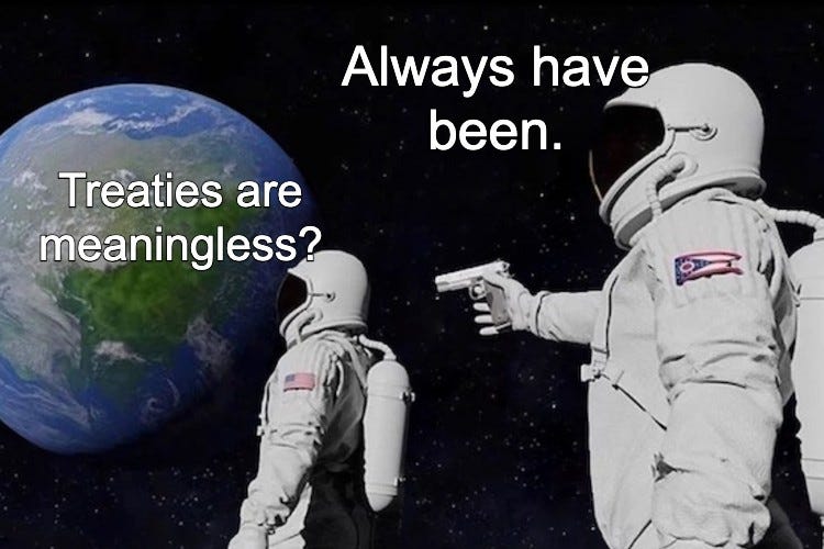 If Trump strong-arms Ukraine into accepting his “peace plan” – which, in its initial form, would really be a surrender – the next president should not consider themselves bound by that agreement. You might be surprised to hear me say that, since LOLing at a treaty is usually the provenance of dictators, not pointy-headed liberals. But I think it’s time for liberals to wake up and acknowledge the way that treaties are and always have been used.