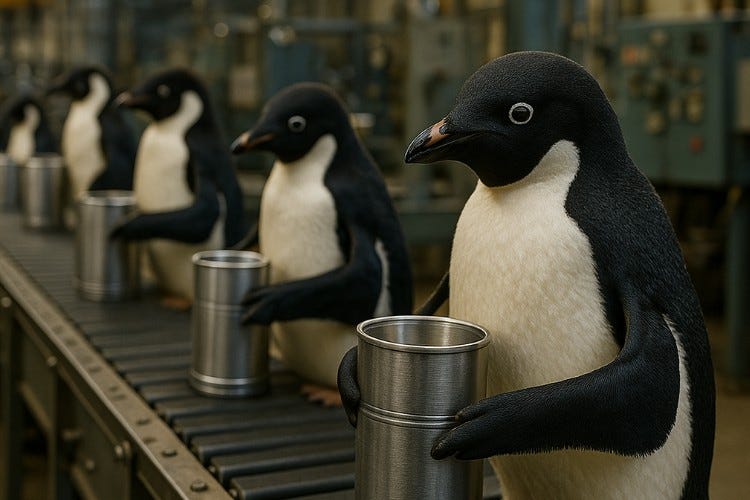 The proximate cause of the entire economics profession wondering “should we just Jonestown ourselves?” isn’t just Trump’s idiotic tariffs; it’s the stupidity with which his idiotic tariffs have been implemented dumbly. Because the less-completely-retarded rationale for tariffs is that they’re a tit-for-tat measure that punishes countries who put up trade barriers; in theory, a brief trade war could push countries to lower barriers and level the playing field. But Trump didn’t slap higher tariffs on countries that have higher barriers; he slapped tariffs on countries that happen to have a trade surplus with the US, no matter what their policies are. Notoriously closed-off economies like Iran and Saudi Arabia got off relatively easy (10 percent tariffs on each), while trading partners who have been playing by the rules like the European Union and Japan got hit hard (20 and 24 percent tariffs, respectively). Also: We put tariffs on a remote island chain in the Indian Ocean inhabited only by penguins. It is now the official policy of the United States that we will restore trade balance by keeping rockhopper penguins from poaching our manufacturing jobs.