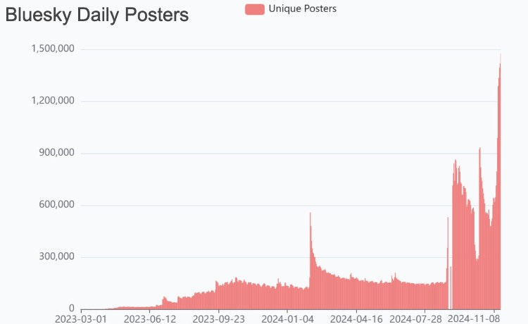 That spike led to a flurry of “Could Bluesky Replace Twitter?” articles. It wasn’t the world’s craziest theory; MySpace, Vine, and Clubhouse prove that it’s possible for Platform A to be replaced by Platform B (especially if Platform B explores bold new horizons of porn). But in the last 18 months, Bluesky has slowly bled out: